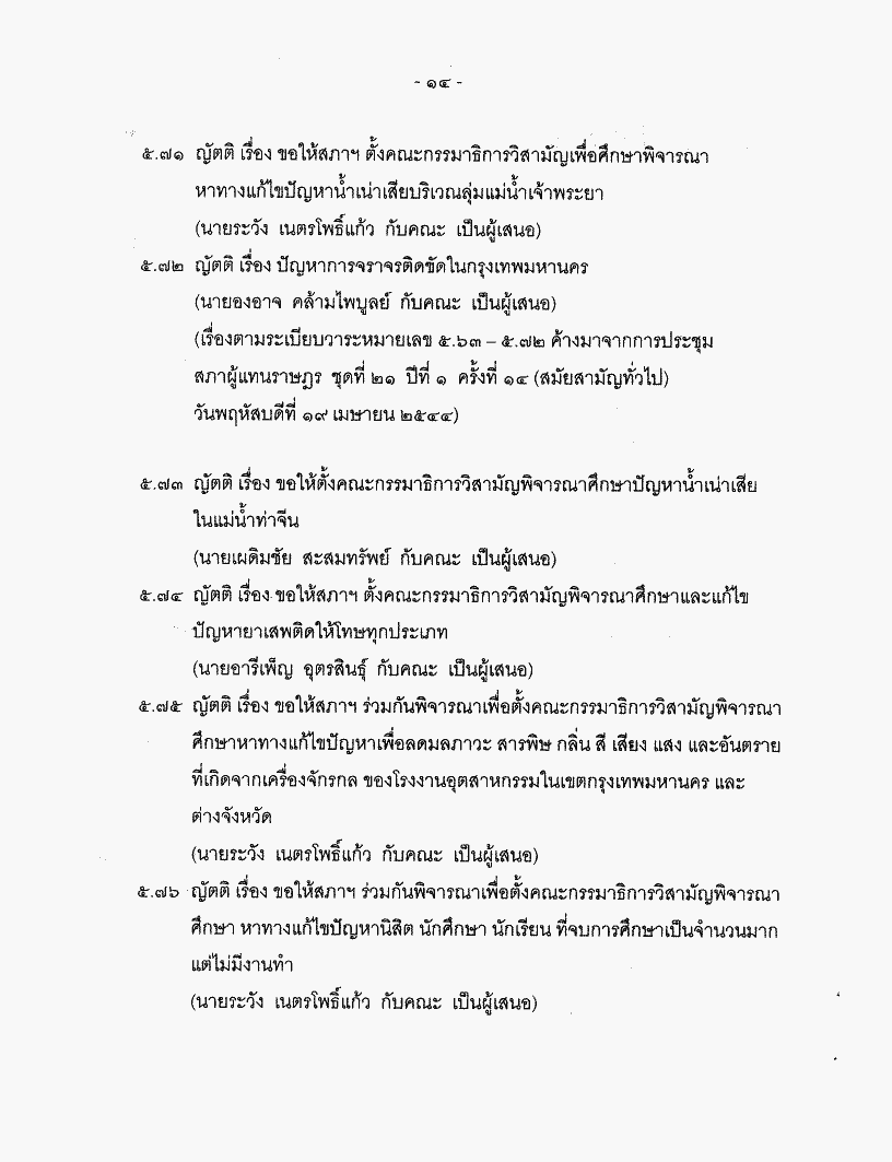 • ระเบียบวาระการประชุมสภาผู้แทนราษฎร > ชุดที่ 21 > ปีที่ 1 > สมัยสามัญทั่วไป > ครั้งที่ 22