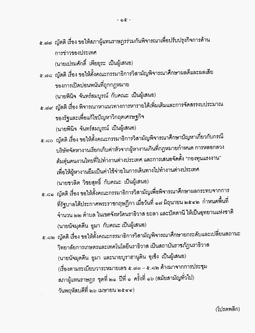 • ระเบียบวาระการประชุมสภาผู้แทนราษฎร > ชุดที่ 21 > ปีที่ 1 > สมัยสามัญทั่วไป > ครั้งที่ 22