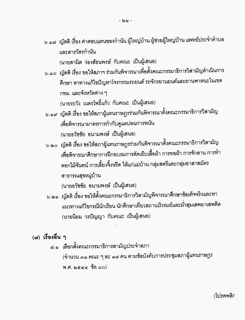 • ระเบียบวาระการประชุมสภาผู้แทนราษฎร > ชุดที่ 21 > ปีที่ 1 > สมัยสามัญทั่วไป > ครั้งที่ 22