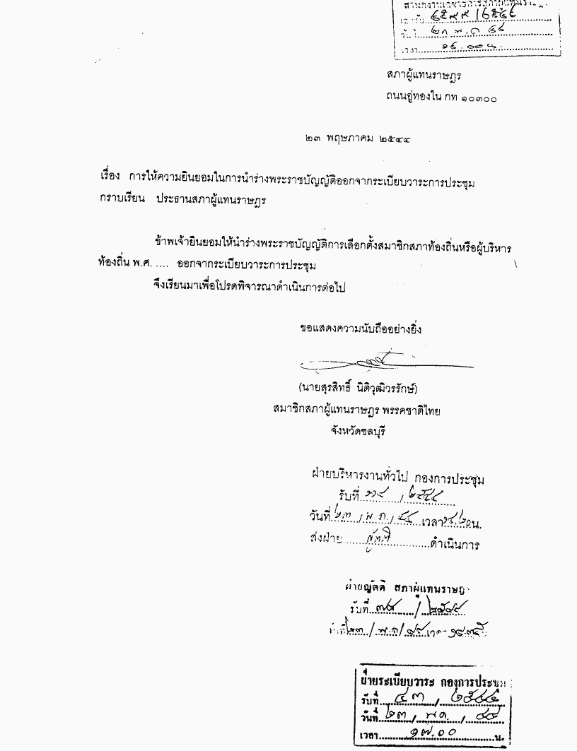 รับทราบเรื่องการนำร่างพระราชบัญญัติของสมาขิกสภาผู้แทนราษฎรออกจากระเบียบวาระการประชุม ตามข้อบังคับการประชุมสภาผู้แทนราษฎร พ.ศ. 2544 ข้อ 57 |
