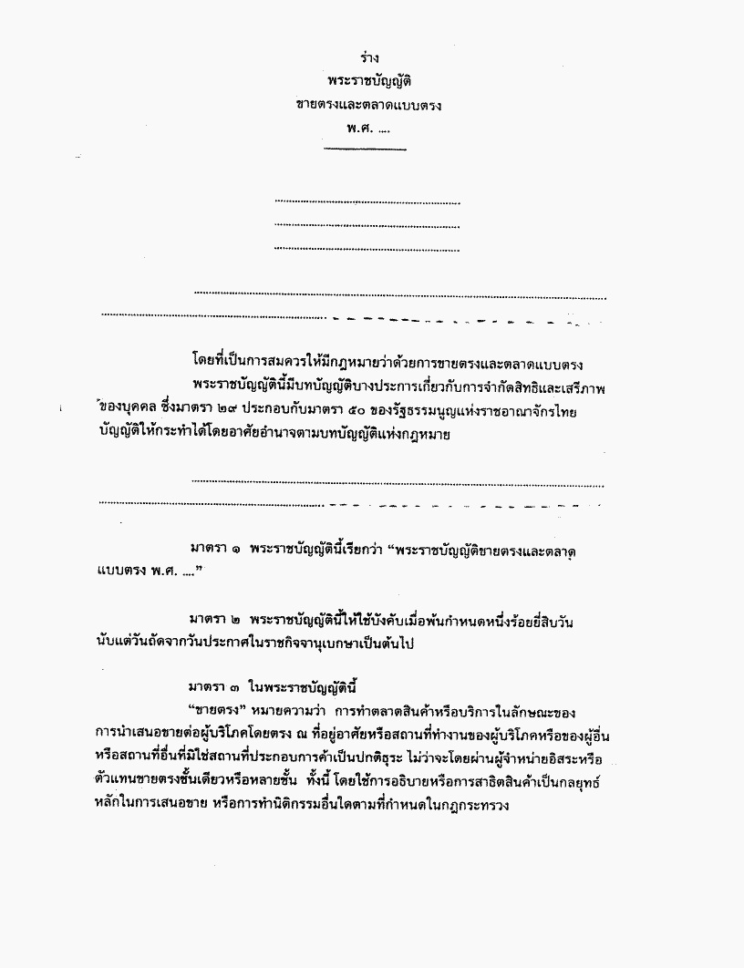 • ร่างพระราชบัญญัติขายตรงและตลาดแบบตรง พ.ศ. ....