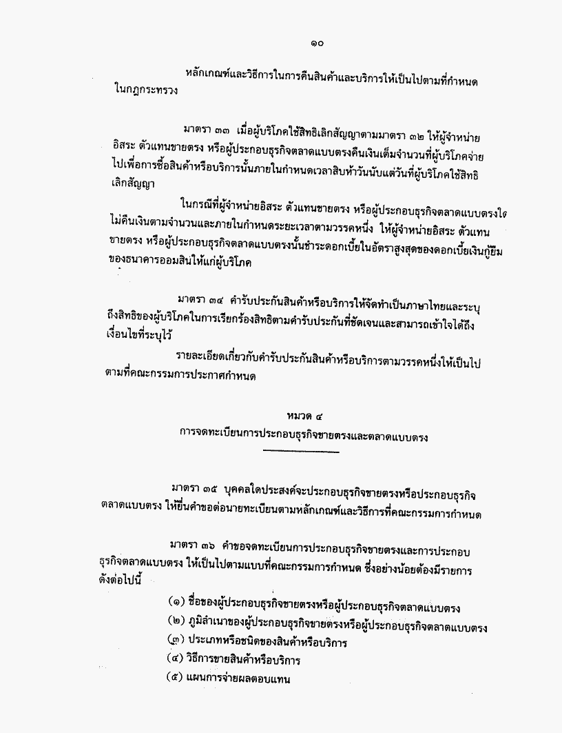 ชื่อเอกสาร :   ร่างพระราชบัญญัติขายตรงและตลาดแบบตรง พ.ศ. .... (ค้างอยู่ระหว่างการพิจารณาของคณะกรรมาธิการของสภาผู้แทนราษฎรชุดที่แล้ว)