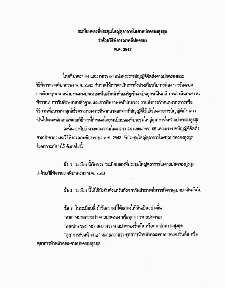 ได้ส่งระเบียบของที่ประชุมใหญ่ตุลาการในศาลปกครองสูงสุด ว่าด้วยวิธีพิจารณาคดีปกครอง พ.ศ. ๒๕๔๓ เพื่อให้ท่านสมาชิกได้ตรวจสอบ ตามเอกสารที่ส่งมาพร้อมนี้