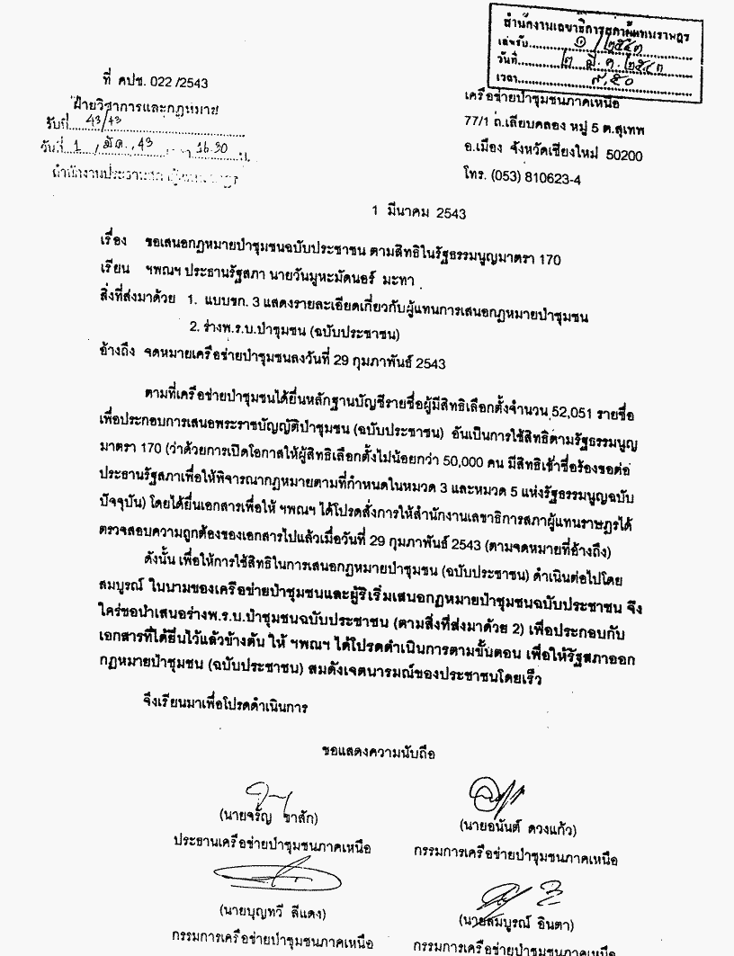 การพิจารณาร่างพระราชบัญญัติป่าชุมชน พ.ศ. .... (ค้างอยู่ระหว่างการพิจารณาของคณะกรรมาธิการของสภาผู้แทนราษฎรชุดที่แล้ว)