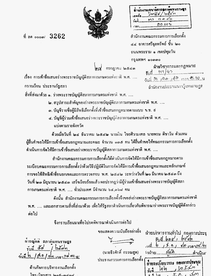 • การเสนอร่างพระราชบัญญัติสภาการเกษตรแห่งชาติ พ.ศ. ....