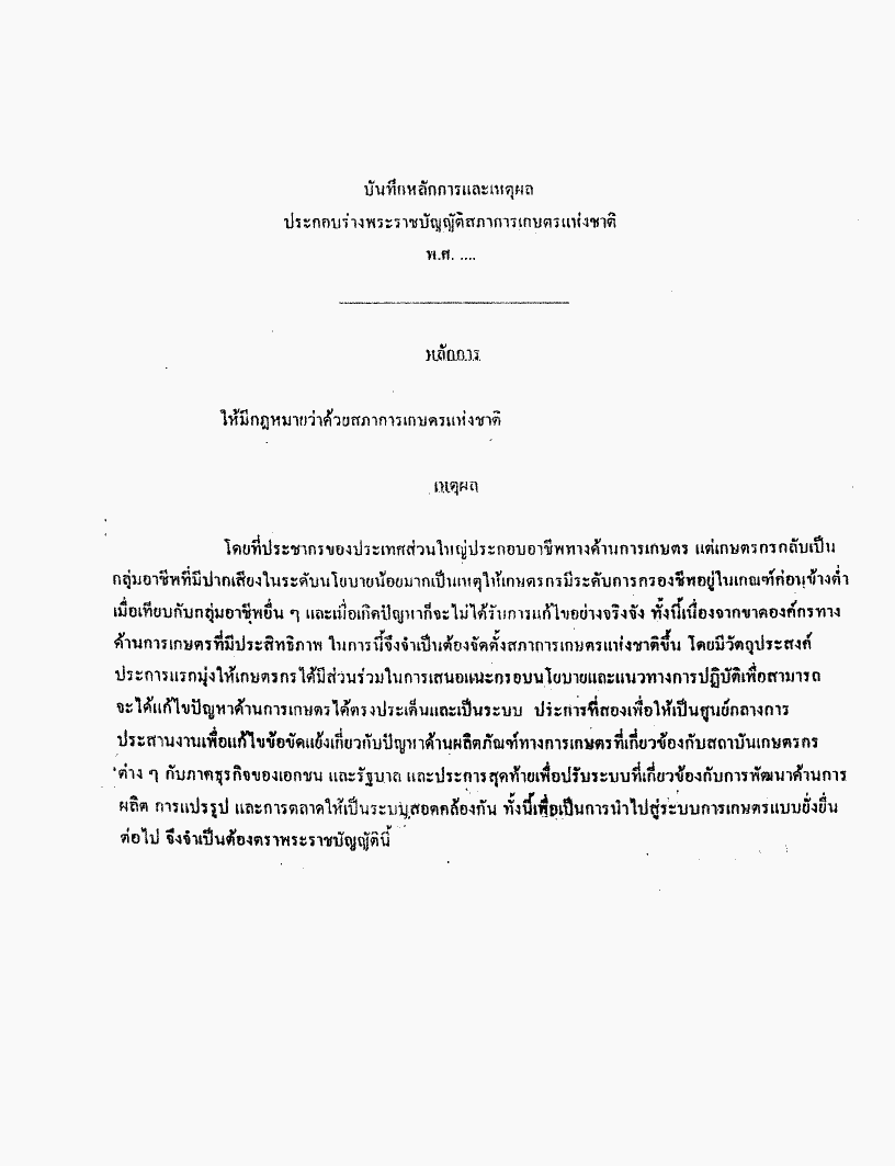 • การเสนอร่างพระราชบัญญัติสภาการเกษตรแห่งชาติ พ.ศ. ....