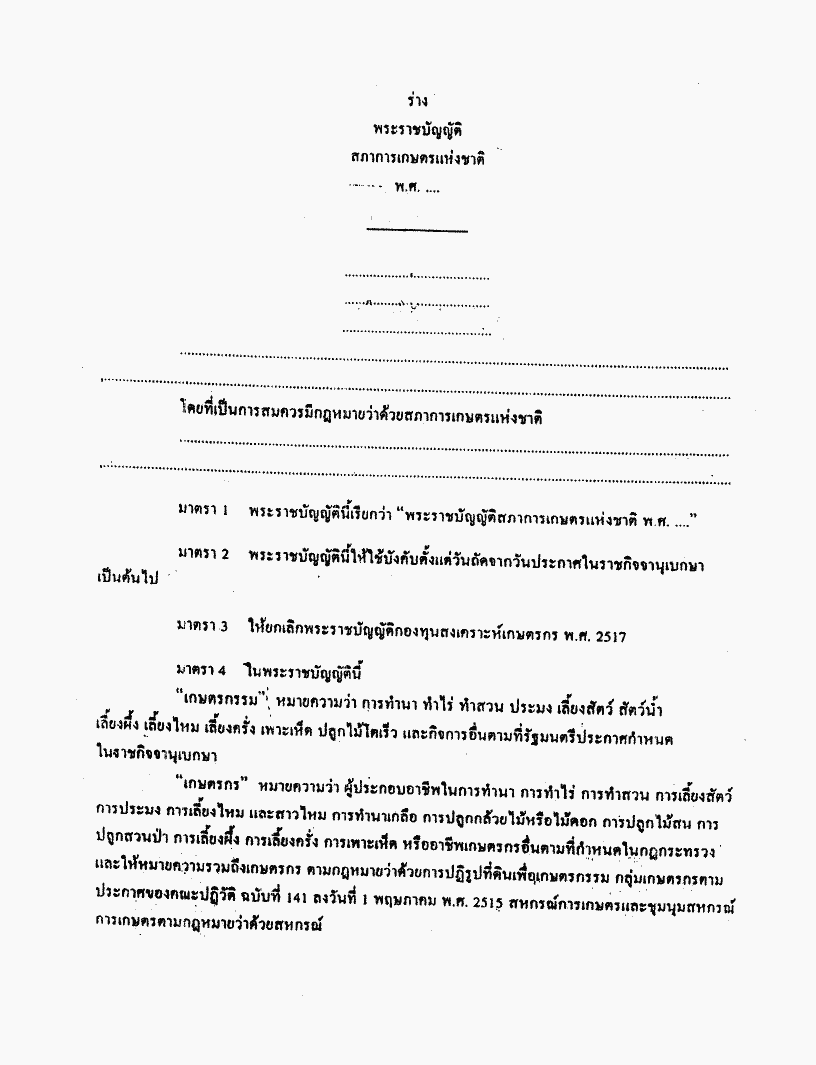 • การเสนอร่างพระราชบัญญัติสภาการเกษตรแห่งชาติ พ.ศ. ....