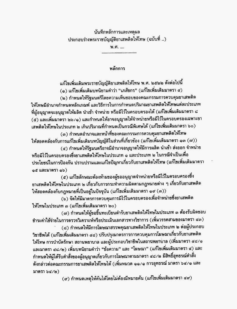 • ร่างพระราชบัญญัติยาเสพติดให้โทษ (ฉบับที่ ..) พ.ศ. ....