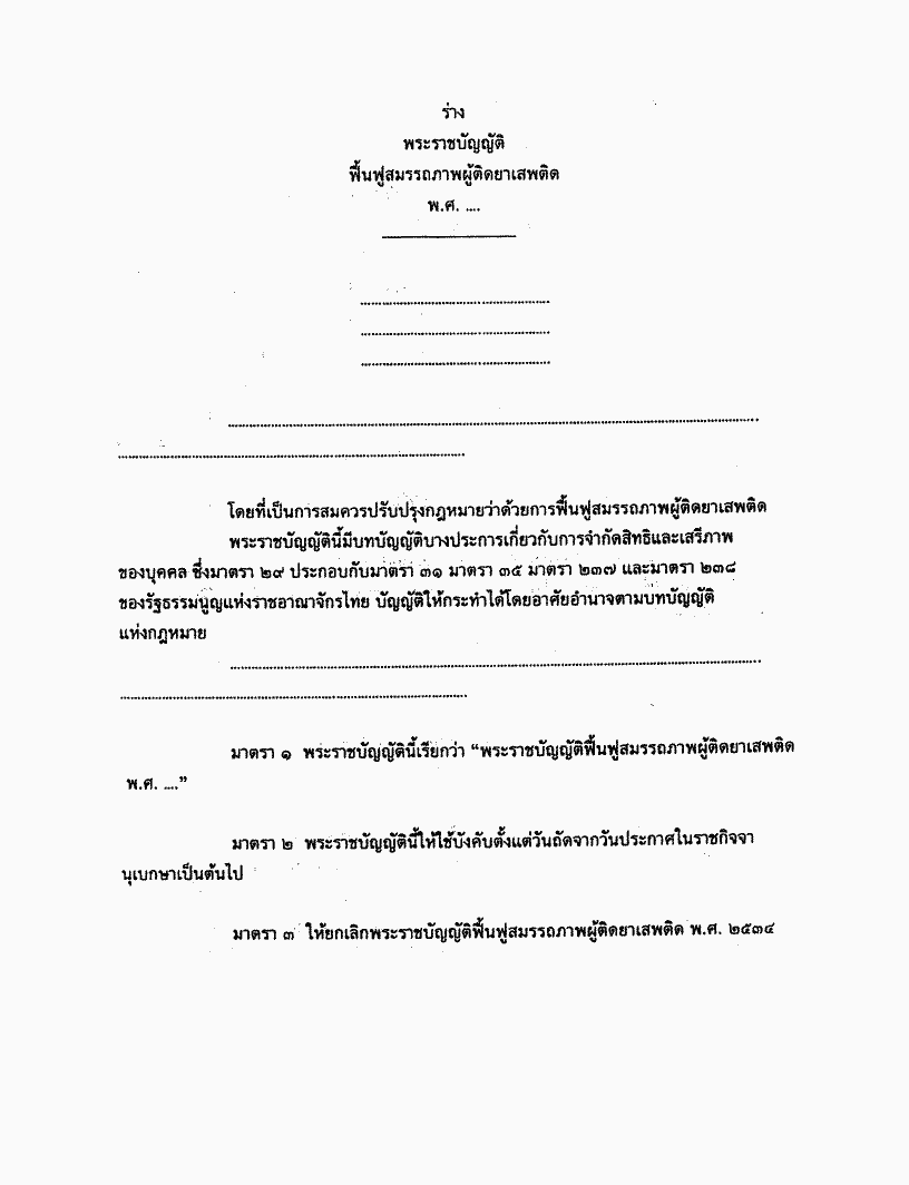 • ร่างพระราชบัญญัติฟื้นฟูสมรรถภาพผู้ติดยาเสพติด พ.ศ. ....