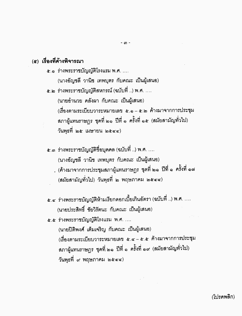 • ระเบียบวาระการประชุมสภาผู้แทนราษฎร > ชุดที่ 21 > ปีที่ 1 > สมัยสามัญทั่วไป > ครั้งที่ 23