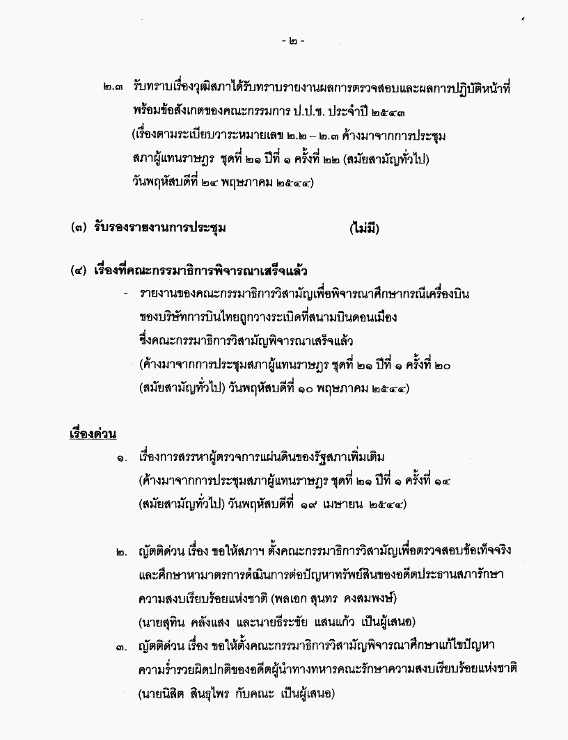 • ระเบียบวาระการประชุมสภาผู้แทนราษฎร ชุดที่ 21 ปีที่ 1 ครั้งที่ 24 (สมัยสามัญทั่วไป) วันพฤหัสบดีที่ 31 พฤษภาคม 2544