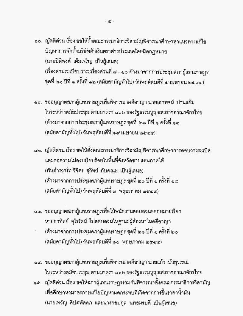 • ระเบียบวาระการประชุมสภาผู้แทนราษฎร ชุดที่ 21 ปีที่ 1 ครั้งที่ 24 (สมัยสามัญทั่วไป) วันพฤหัสบดีที่ 31 พฤษภาคม 2544