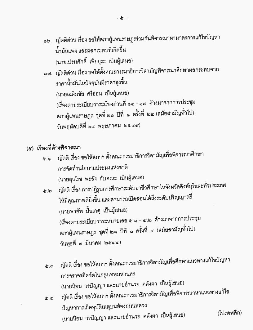 • ระเบียบวาระการประชุมสภาผู้แทนราษฎร > ชุดที่ 21 > ปีที่ 1 > สมัยสามัญทั่วไป > ครั้งที่ 24