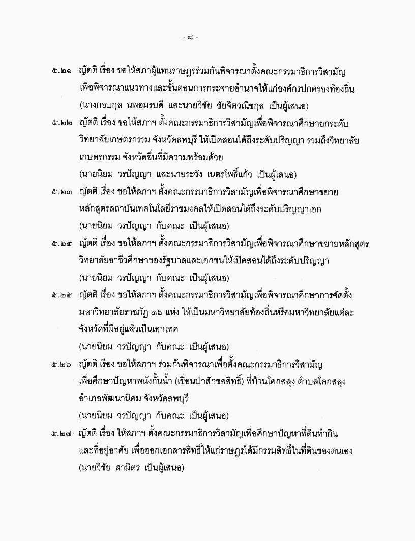 • ระเบียบวาระการประชุมสภาผู้แทนราษฎร ชุดที่ 21 ปีที่ 1 ครั้งที่ 24 (สมัยสามัญทั่วไป) วันพฤหัสบดีที่ 31 พฤษภาคม 2544