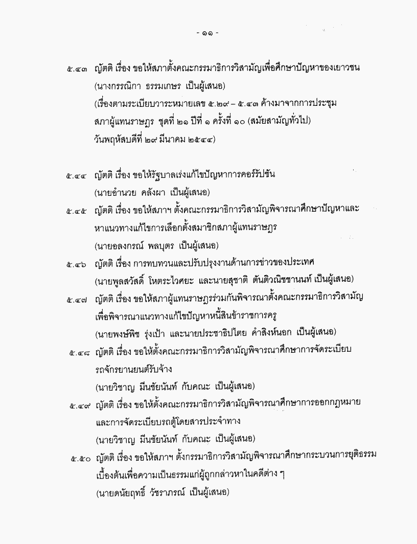 ระเบียบวาระการประชุมสภาผู้แทนราษฎร ชุดที่ 21 ปีที่ 1 ครั้งที่ 24 (สมัยสามัญทั่วไป) วันพฤหัสบดีที่ 31 พฤษภาคม 2544