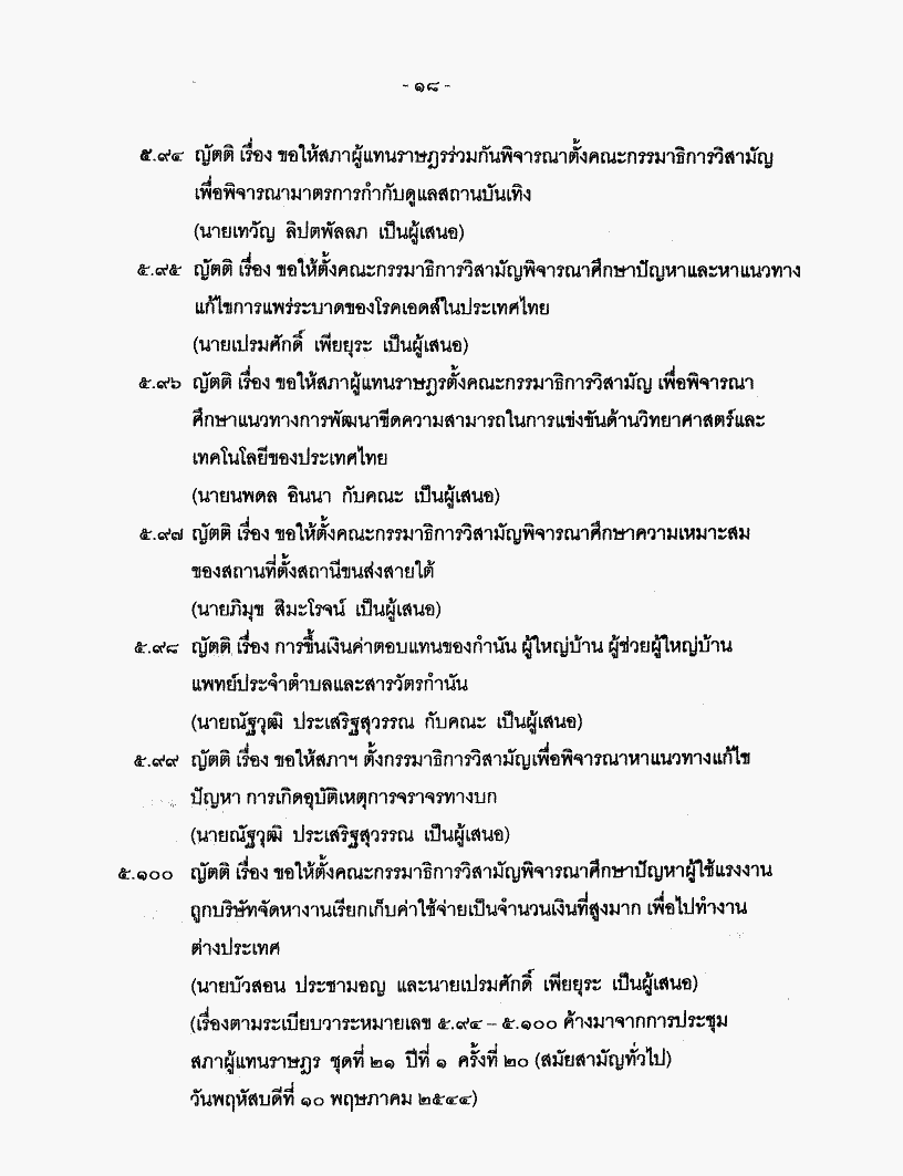 • ระเบียบวาระการประชุมสภาผู้แทนราษฎร ชุดที่ 21 ปีที่ 1 ครั้งที่ 24 (สมัยสามัญทั่วไป) วันพฤหัสบดีที่ 31 พฤษภาคม 2544