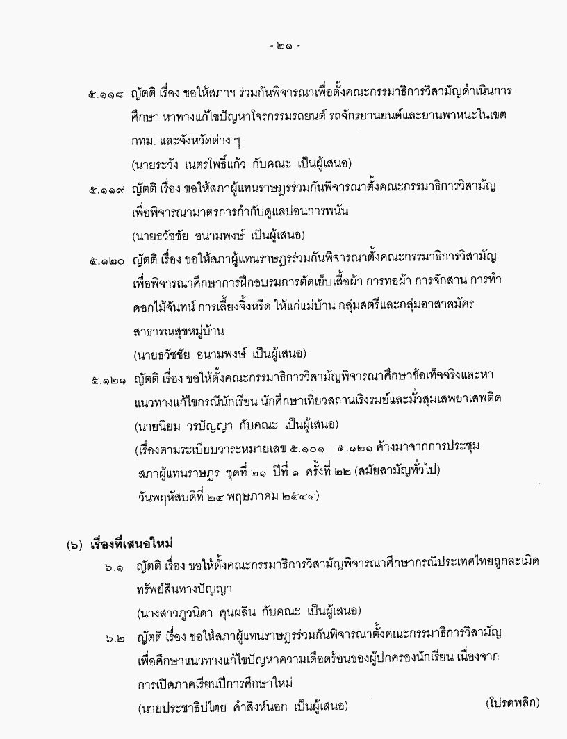 • ระเบียบวาระการประชุมสภาผู้แทนราษฎร ชุดที่ 21 ปีที่ 1 ครั้งที่ 24 (สมัยสามัญทั่วไป) วันพฤหัสบดีที่ 31 พฤษภาคม 2544