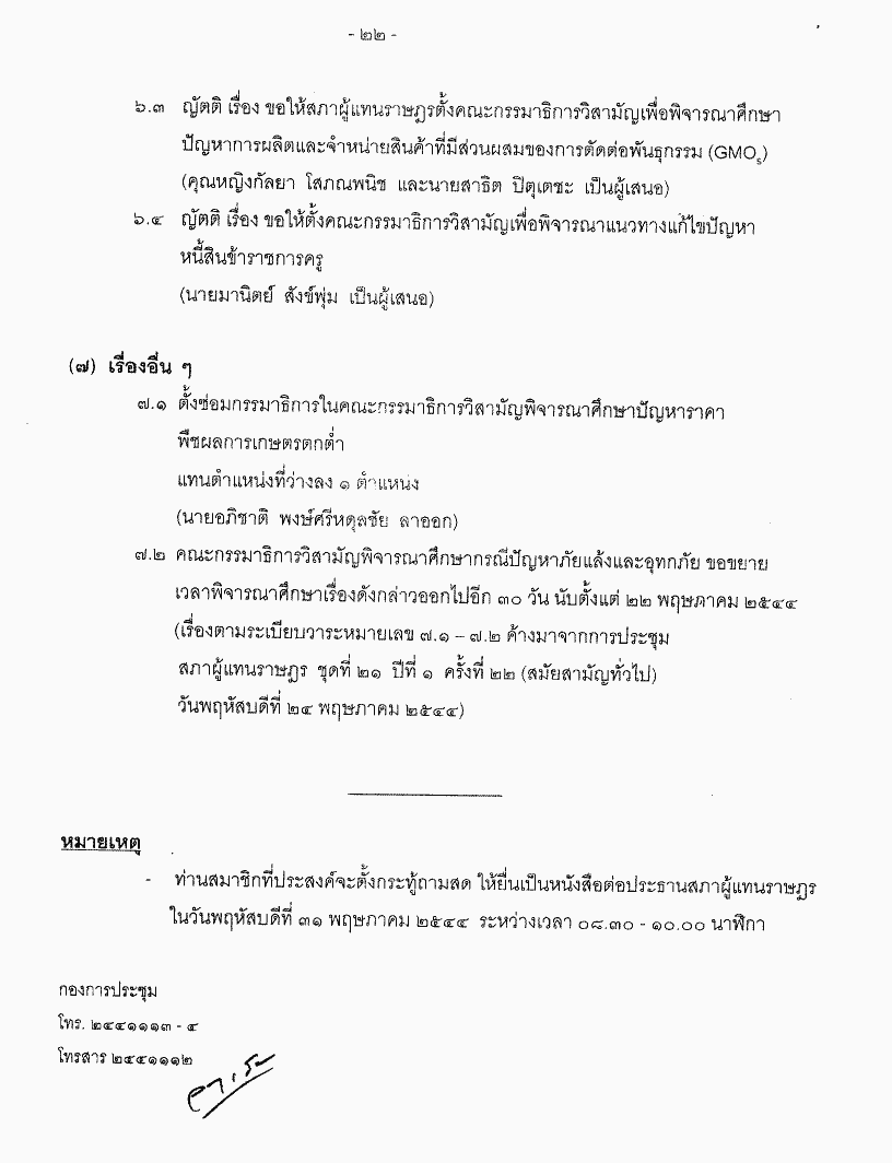 ชื่อเอกสาร : ระเบียบวาระการประชุมสภาผู้แทนราษฎร ชุดที่ 21 ปีที่ 1 ครั้งที่ 24 (สมัยสามัญทั่วไป) วันพฤหัสบดีที่ 31 พฤษภาคม 2544