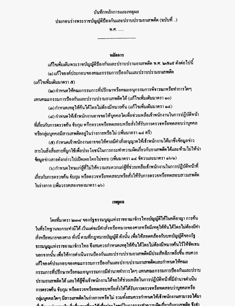 • ร่างพระราชบัญญัติป้องกันและปราบปรามยาเสพติด (ฉบับที่ ..) พ.ศ. .....