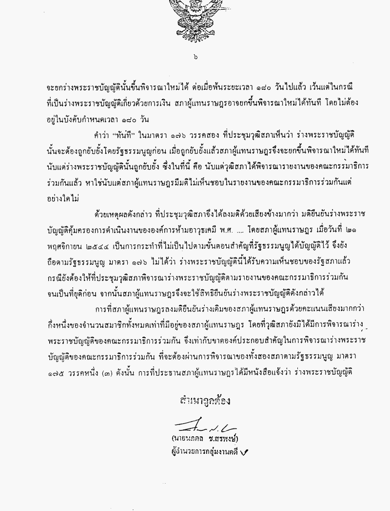 • ส่งสำเนาคำวินิจฉัยศาลรัฐธรรมนูญ