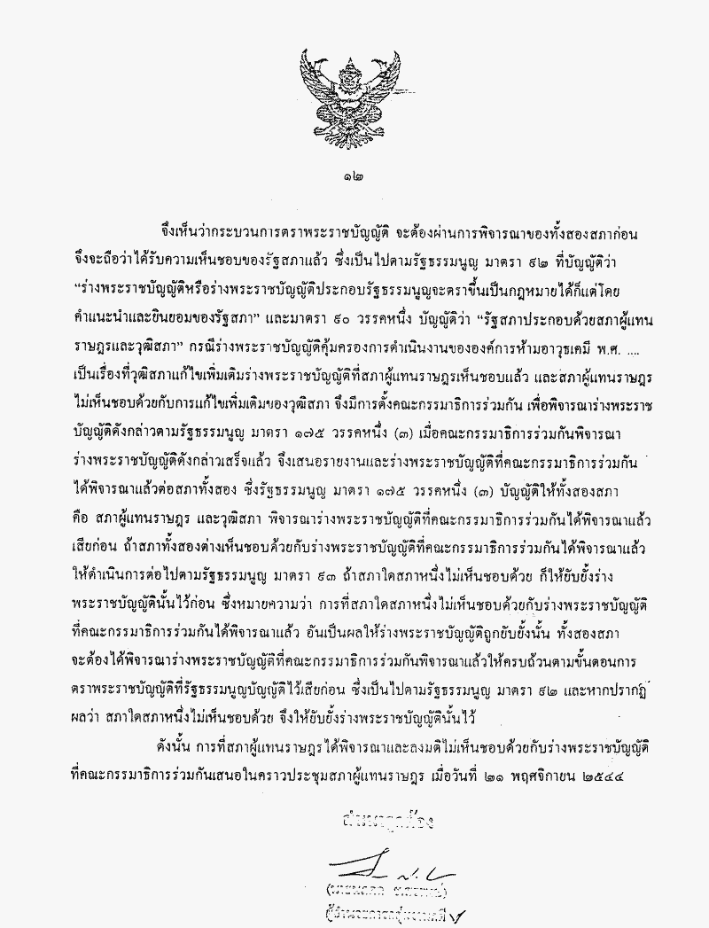 ชื่อเอกสาร :   รับทราบคำวินิจฉัยศาลรัฐธรรมนูญ เรื่อง วุฒิสภาขอให้ศาลรัฐธรรมนูญพิจารณาวินิจฉัยปัญหาเกี่ยวกับอำนาจหน้าที่ของวุฒิสภาตามรัฐธรรมนูญ มาตรา 266 และประธานวุฒิสภาส่งความเห็นของสมาชิกวุฒิสภาขอให้ศาลรัฐธรรมนูญพิจารณาวินิจฉัยตามรัฐธรรมนูญมาตรา 262 วรรคหนึ่ง (1) (กรณีสภาผู้แทนราษฎรยืนยันร่างพระราชบัญญัติคุ้มครองการดำเนินงานขององค์การห้ามอาวุธเคมี พ.ศ. .... โดยไม่ต้องรอผลการพิจารณาร่างพระราชบัญญัติดังกล่าวที่คณะกรรมาธิการร่วมกันพิจารณาเสร็จแล้วของวุฒิสภา)