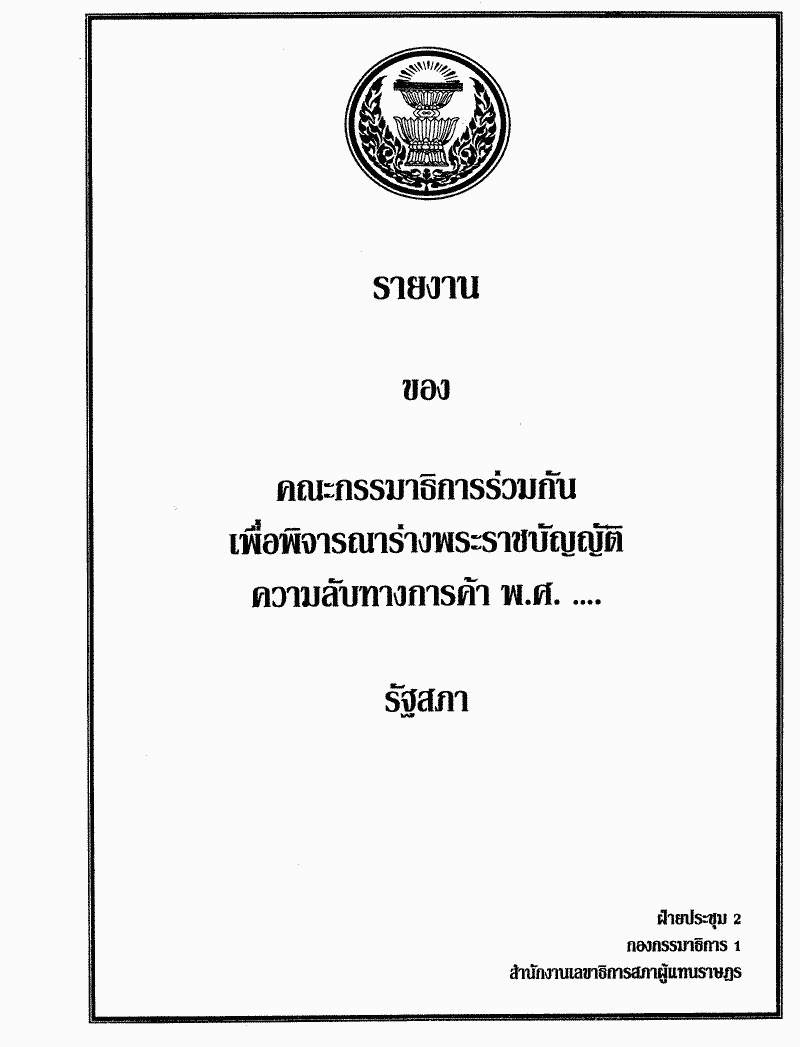 ชื่อเอกสาร :   ร่างพระราชบัญญัติความลับทางการค้า พ.ศ. .... ซึ่งคณะกรรมาธิการร่วมกันพิจารณาเสร็จแล้ว