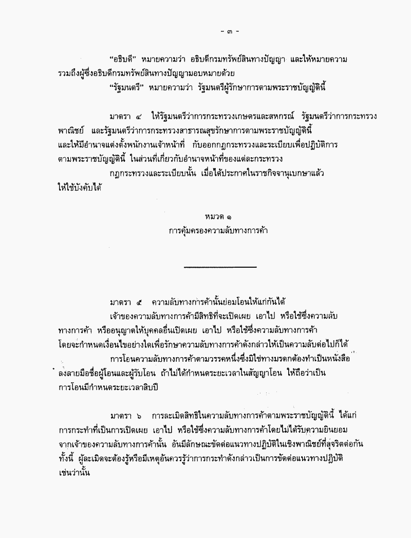 ชื่อเอกสาร :   ร่างพระราชบัญญัติความลับทางการค้า พ.ศ. .... ซึ่งคณะกรรมาธิการร่วมกันพิจารณาเสร็จแล้ว