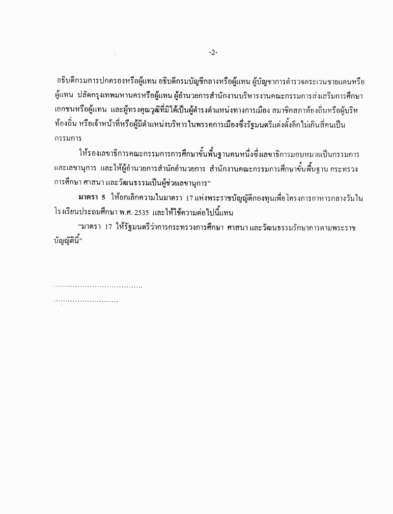 • ร่างพระราชบัญญัติกองทุนเพื่อโครงการอาหารกลางวันในโรงเรียนประถมศึกษา (ฉบับที่ ..) พ.ศ. ....