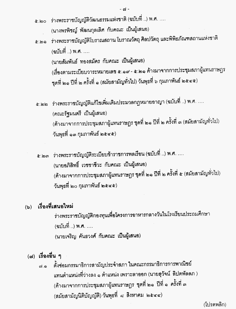 • ระเบียบวาระการประชุมสภาผู้แทนราษฎร > ชุดที่ 21 > ปีที่ 2 > สมัยสามัญทั่วไป > ครั้งที่ 7