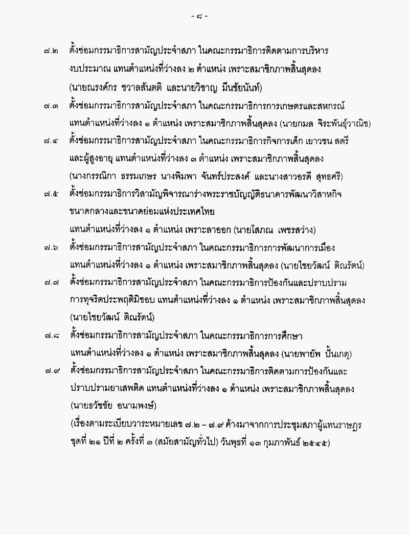 ชื่อเอกสาร : ระเบียบวาระการประชุมสภาผู้แทนราษฎร ชุดที่ 21 ปีที่ 2 ครั้งที่ 7 (สมัยสามัญทั่วไป) วันพุธที่ 27 กุมภาพันธ์ 2545