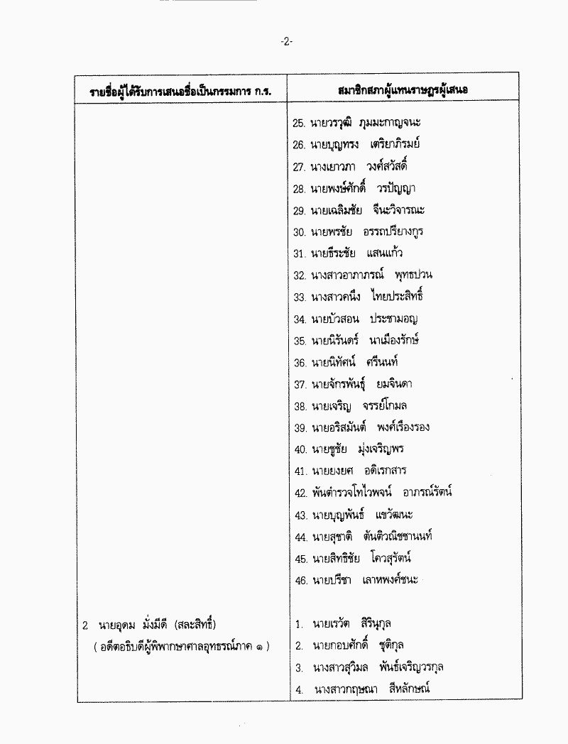 • รายชื่อผู้ทรงคุณวุฒิที่สมาชิกสภาผู้แทนราษฎรเสนอ (เลือก 1 ราย) รายชื่อผู้ได้รับการเสนอชื่อเป็นกรรมการ ก.ร. สมาชิกสภาผู้แทนราษฎรผู้เสนอ