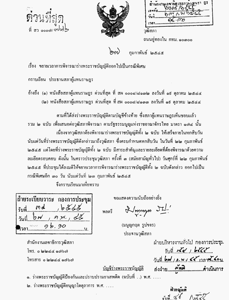ขยายเวลาการพิจารณาร่างพระราชบัญญัติออกไปเป็นกรณีพิเศษ |