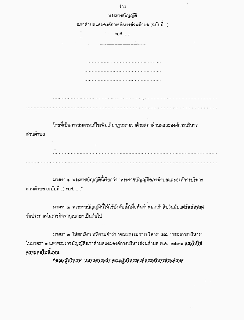 • ร่างพระราชบัญญัติสภาตำบลและองค์การบริหารส่วนตำบล (ฉบับที่..) พ.ศ.....