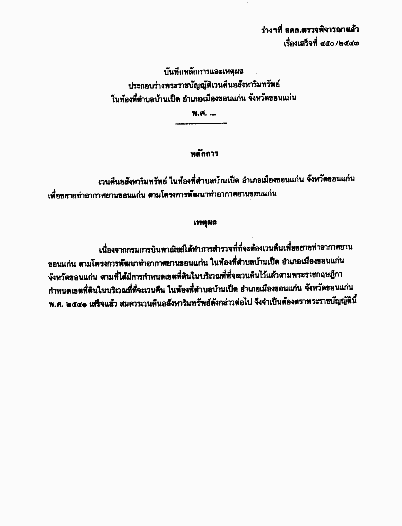 • ร่างพระราชบัญญัติเวนคืนอสังหาริมทรัพย์ ในท้องที่ตำบลบ้านเป็ด อำเภอเมืองขอนแก่น จังหวัดขอนแก่น พ.ศ. ......