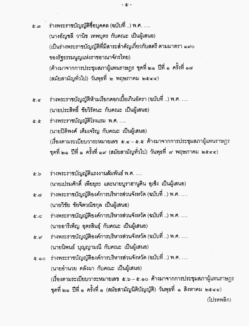 • ระเบียบวาระการประชุมสภาผู้แทนราษฎรชุดที่ 21 ปีที่ 2 ครั้งที่ 8 (สมัยสามัญทั่วไป) วันพุธที่ 6 มีนาคม 2545