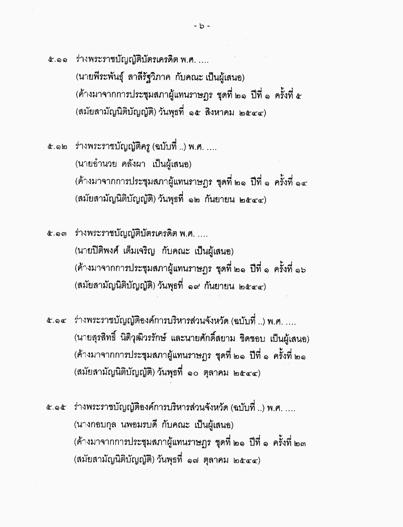 • ระเบียบวาระการประชุมสภาผู้แทนราษฎรชุดที่ 21 ปีที่ 2 ครั้งที่ 8 (สมัยสามัญทั่วไป) วันพุธที่ 6 มีนาคม 2545