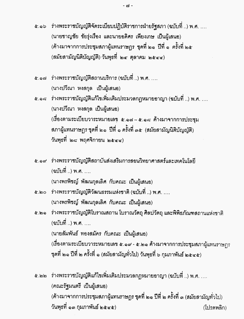 ชื่อเอกสาร : ระเบียบวาระการประชุมสภาผู้แทนราษฎรชุดที่ 21 ปีที่ 2 ครั้งที่ 8 (สมัยสามัญทั่วไป) วันพุธที่ 6 มีนาคม 2545