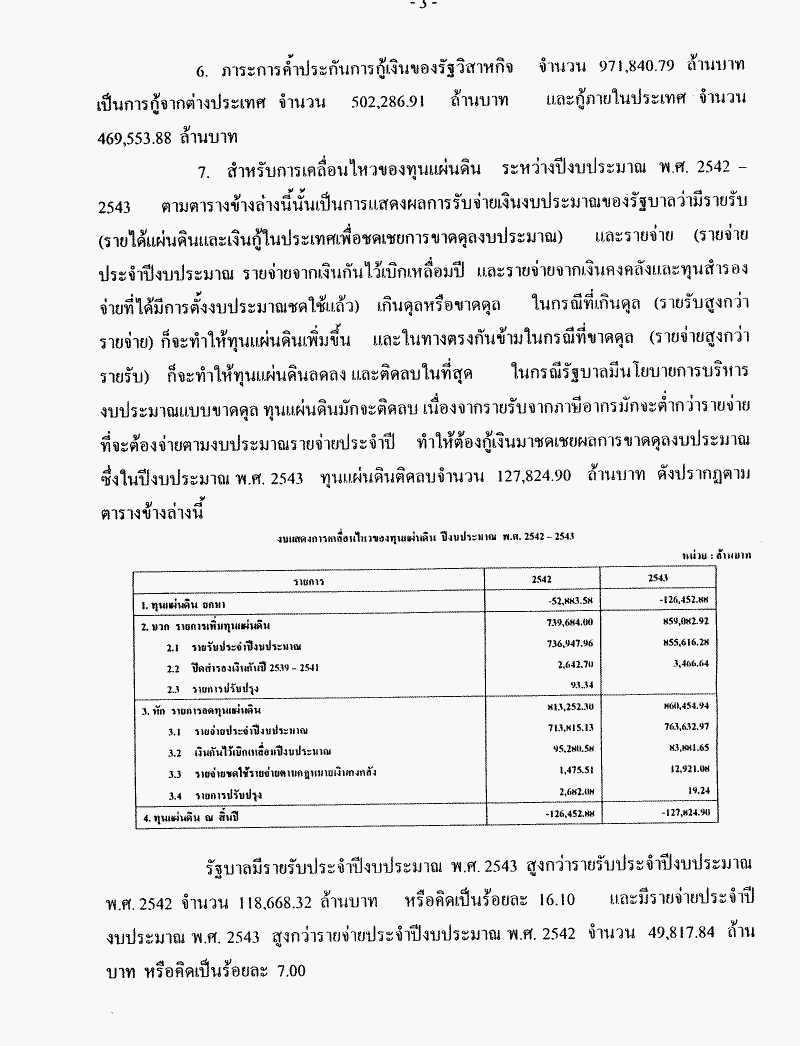 รับทราบรายงานการเงินของแผ่นดินประจำปีงบประมาณ พ.ศ. 2543
