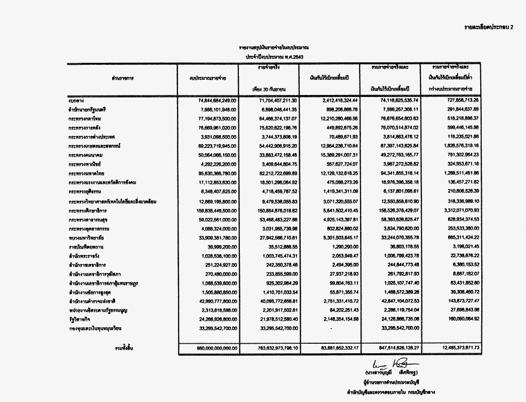 รายงานการเงินของแผ่นดินประจำปีงบประมาณ พ.ศ. 2543