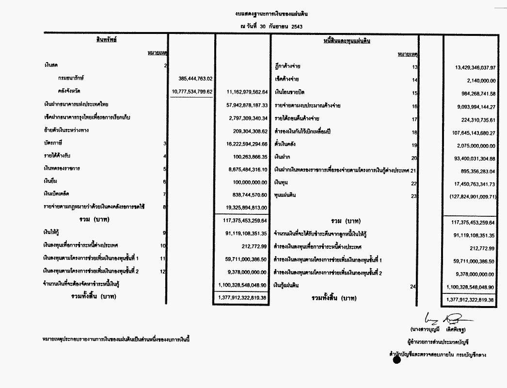 รายงานการเงินของแผ่นดินประจำปีงบประมาณ พ.ศ. 2543