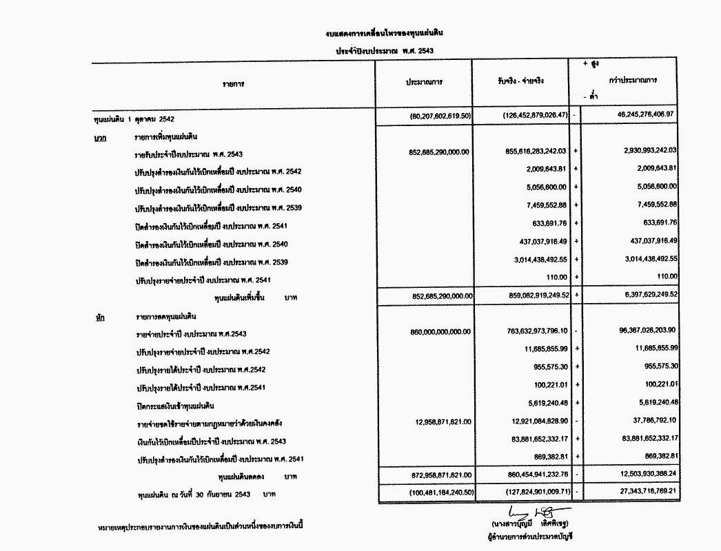 รายงานการเงินของแผ่นดินประจำปีงบประมาณ พ.ศ. 2543