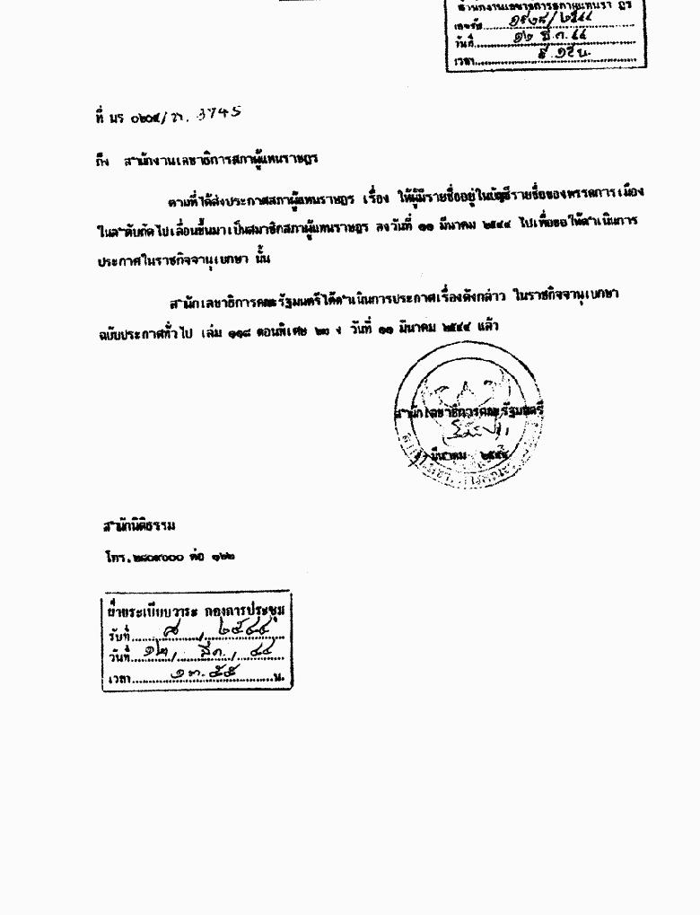 ประกาศสภาผู้แทนราษฎร เรื่อง ให้ผู้มีรายชื่ออยู่ในบัญชีรายชื่อของพรรคการเมืองในลำดับถัดไปเลื่อนขึ้นมาเป็นสมาชิกสภาผู้แทนราษฎร |