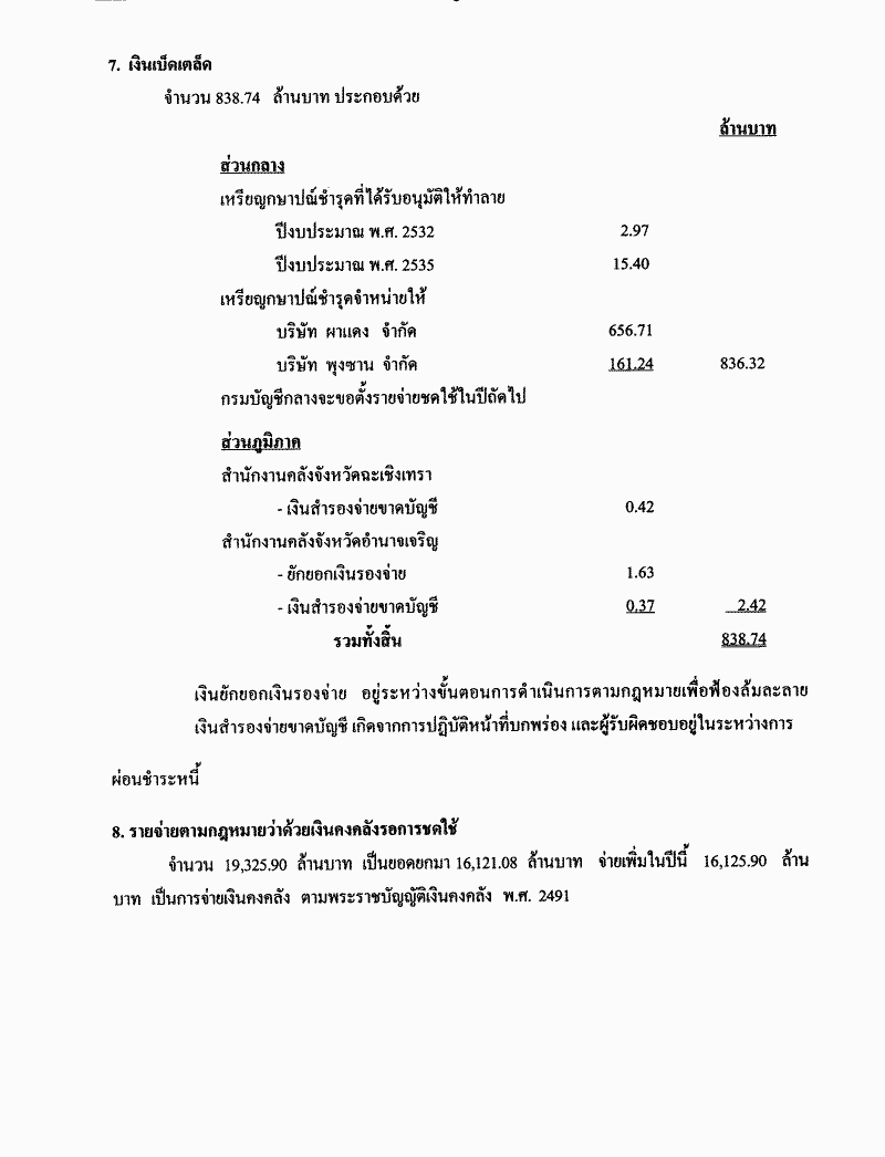 รับทราบรายงานการเงินของแผ่นดินประจำปีงบประมาณ พ.ศ. 2543