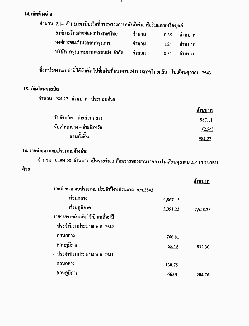รับทราบรายงานการเงินของแผ่นดินประจำปีงบประมาณ พ.ศ. 2543