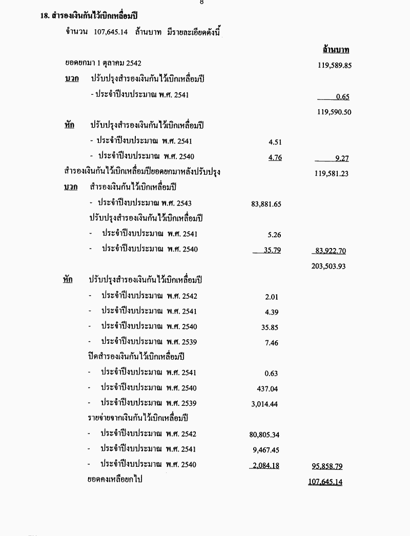 รับทราบรายงานการเงินของแผ่นดินประจำปีงบประมาณ พ.ศ. 2543