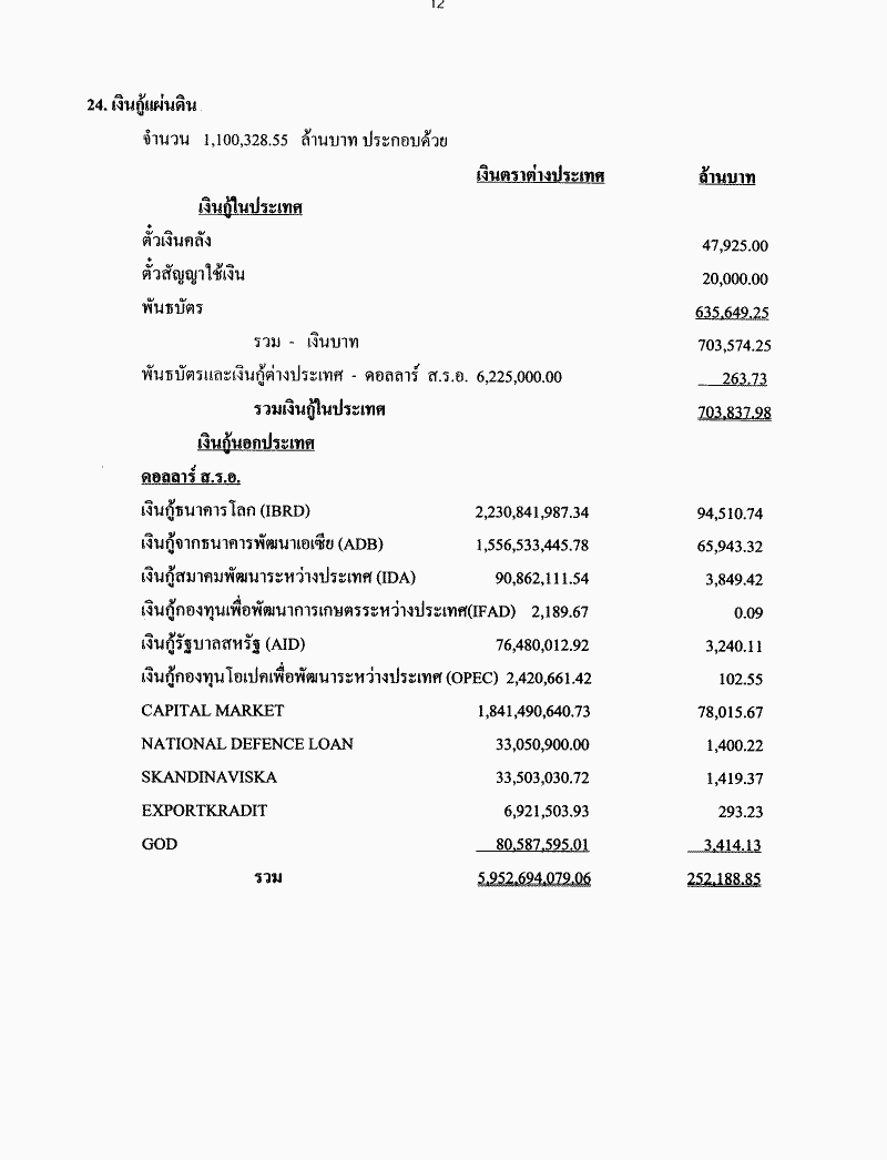 รับทราบรายงานการเงินของแผ่นดินประจำปีงบประมาณ พ.ศ. 2543
