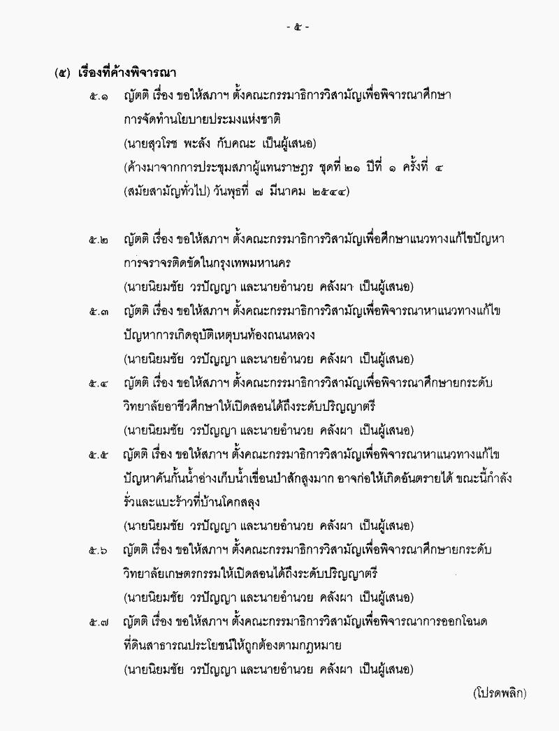 • ระเบียบวาระการประชุมสภาผู้แทนราษฎร ชุดที่ 21 ปีที่ 2 ครั้งที่ 9 (สมัยสามัญทั่วไป) วันพฤหัสบดีที่ 7 มีนาคม 2545