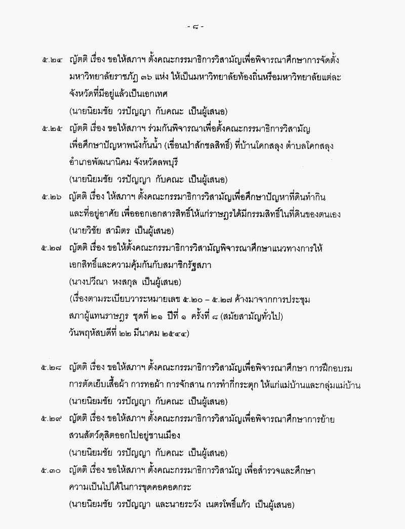 • ระเบียบวาระการประชุมสภาผู้แทนราษฎร ชุดที่ 21 ปีที่ 2 ครั้งที่ 9 (สมัยสามัญทั่วไป) วันพฤหัสบดีที่ 7 มีนาคม 2545