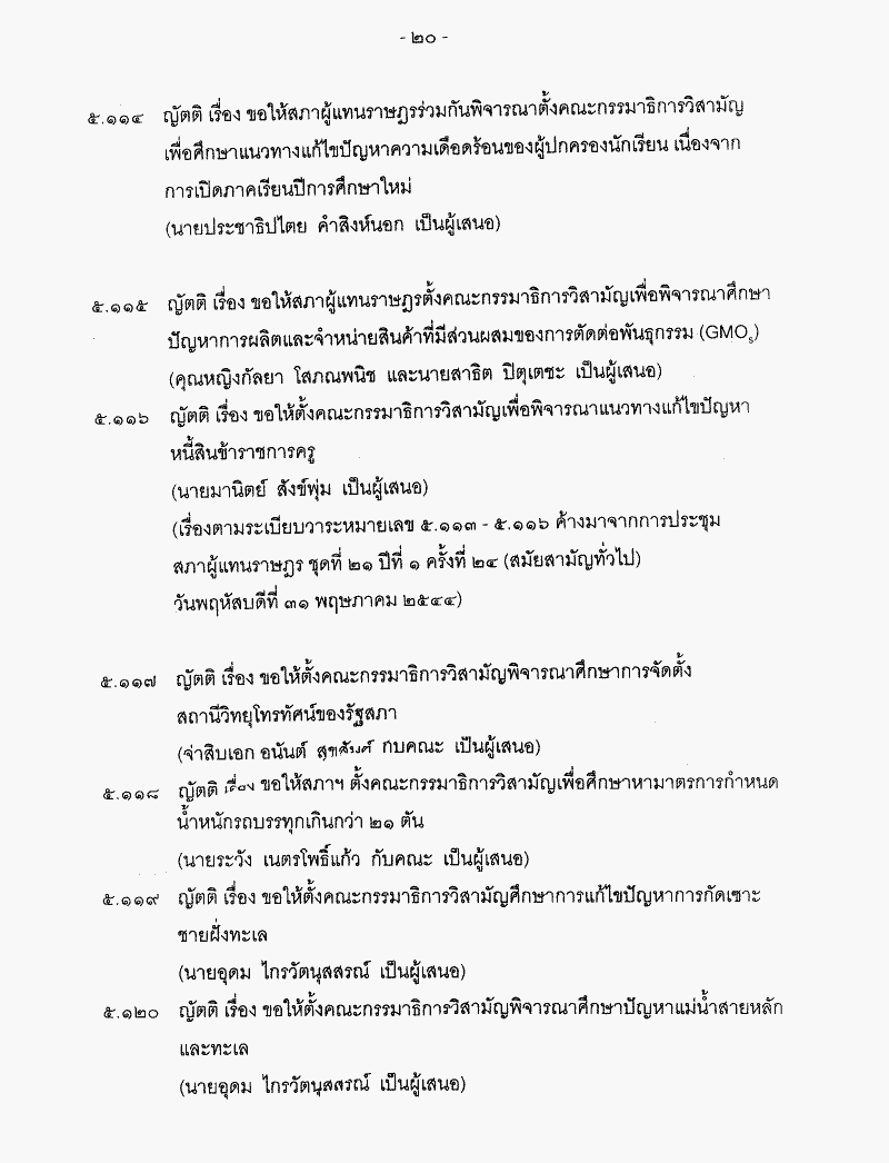 • ระเบียบวาระการประชุมสภาผู้แทนราษฎร ชุดที่ 21 ปีที่ 2 ครั้งที่ 9 (สมัยสามัญทั่วไป) วันพฤหัสบดีที่ 7 มีนาคม 2545