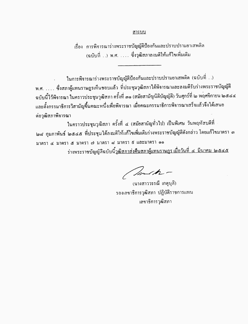 ชื่อเอกสาร :   พิจารณากรณีวุฒิสภาแก้ไขเพิ่มเติมร่างพระราชบัญญัติป้องกันและปราบปรามยาเสพติด (ฉบับที่ ..) พ.ศ. .... ตามมาตรา 175 ของรัฐธรรมนูญแห่งราชอาณาจักรไทย